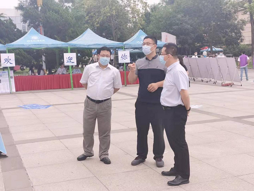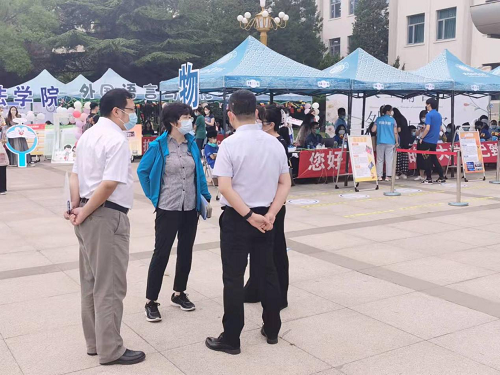 迎新点,与学院报到负责老师、新生辅导员和志愿者们亲切交谈,详细询问新生入校审核的具体细节,深入了解迎新工作的具体情况,询问各工作点工作进度,并对迎新工作的开展提出了指导意见。
