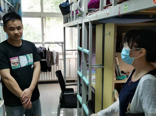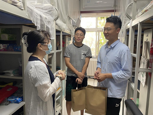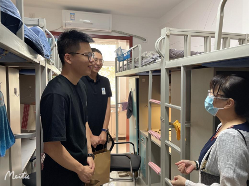 党委书记王红、研究生辅导员王志鹏、研究生辅导员李清月一行深入到学生宿舍,走访了富河园校区研究生,给同学们带去香甜的月饼以及真挚的节日祝福,让同学们深切感受到了学院的深切关怀。