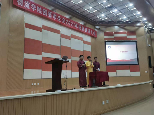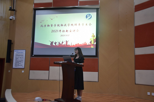 分团委学生会十一个部门代表分别上台发言,通过PPT演讲的方式向2021级新生介绍各部门基本情况及相应工作。
