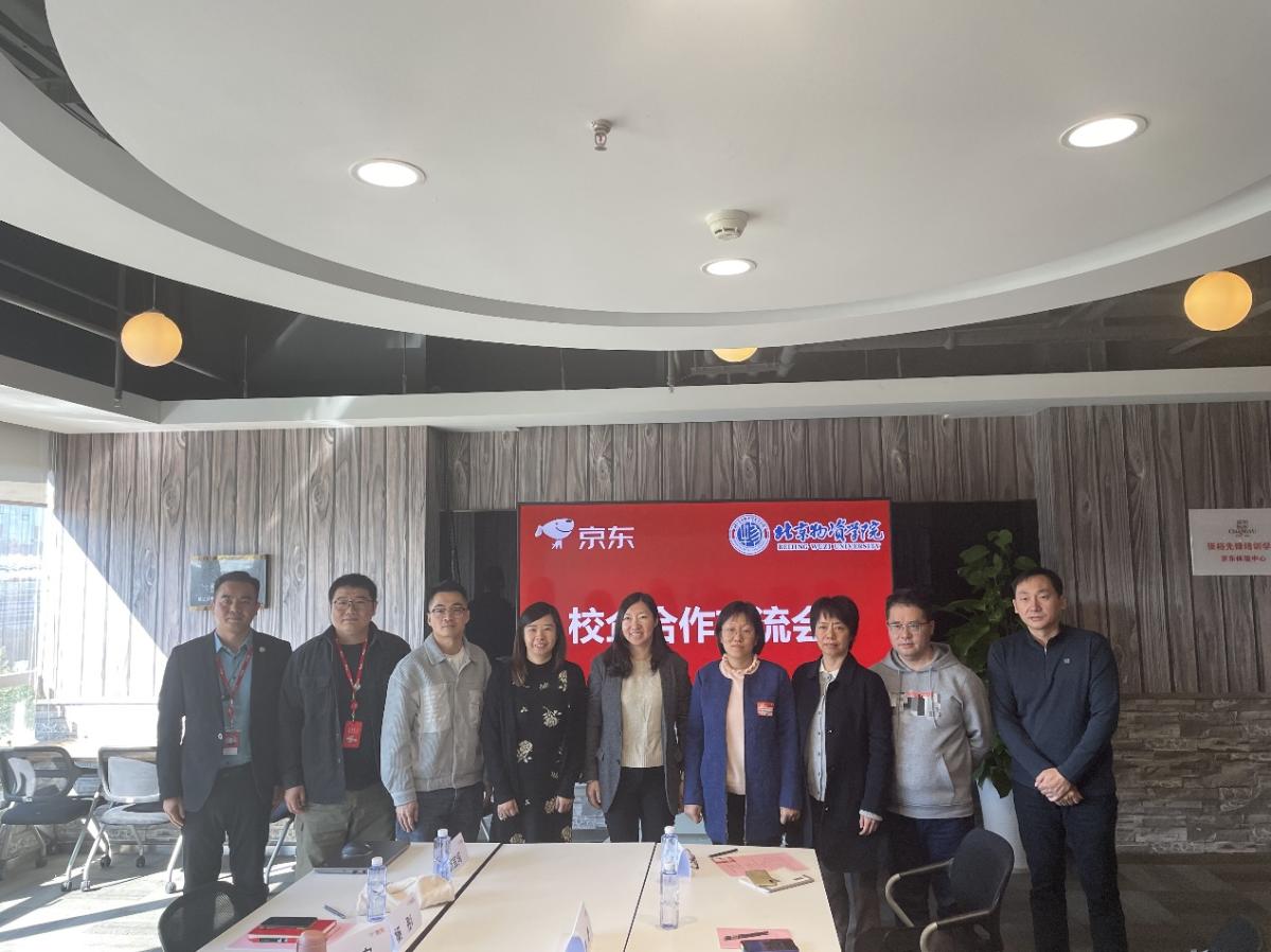 副院长芮嘉明、院长助理郭琳、信息学院副院长陈蕾、信息管理与电子商务系主任岳溥庥、商学院刘华教授、京东学院执行院长孔德超,京东零售学院院长曲宁宁、政校企合作总监汪世龙、专业力负责人杨彤、通用力负责人孙睿、专业力专家刘宜闯、通用力专家吴海超等参加交流。