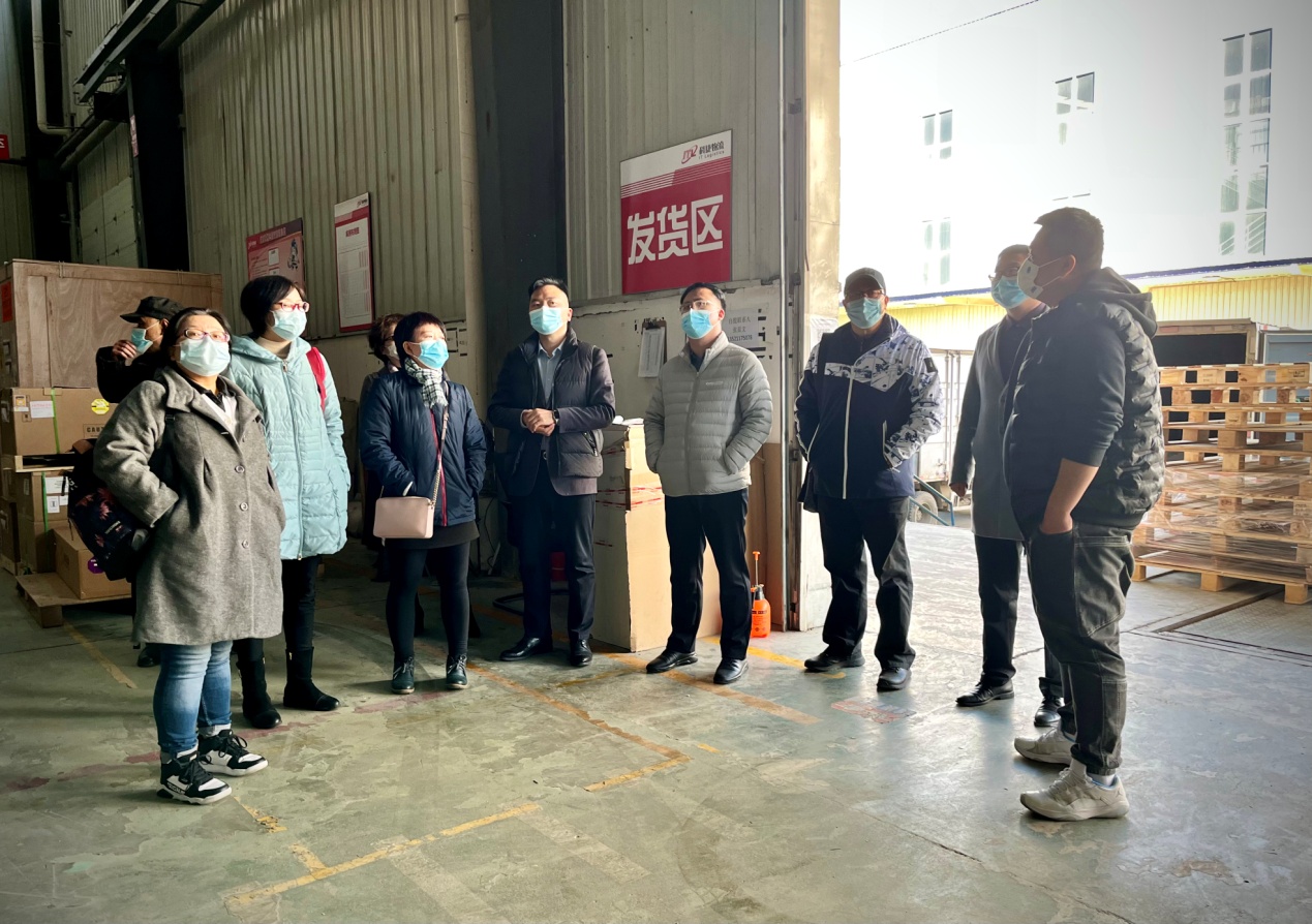双方一行首先进入东六元物流公司作业现场,就东六元物流公司目前主要客户的业务特点、作业流程、信息化管理,特别是疫情背景下东六元物流公司的保供应急组织工作等情况进行现场交流。