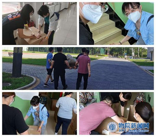 “同学,我现在要整理你柜子里的物品了,请确认。”“老师一定帮你把行李打好包。”“显示器已经给你单独打包好了,放心吧。”“同学你看,这些还是你要的物品吗?”老师和志愿者们仔细和毕业生们确认物品,认真细致为同学收拾行李。手机屏幕这端的师生就像对待自己的物品一样,精心地把每样打包物品有序规整地码放在打包箱里,手机屏幕那端的毕业生就像与家人沟通一样,放心信任地交代着每一样物品如何处理。师生志愿者与毕业生的“家人式”交流方式充分映射出了物院人、物流人之间朴素暖心的情感归属。