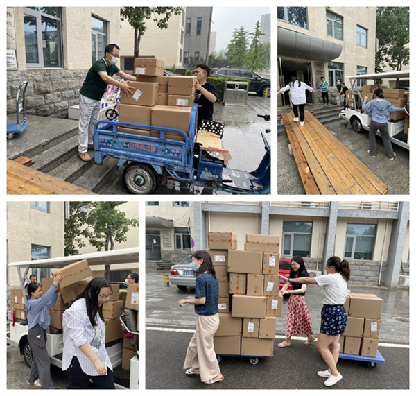 党委书记王红、院长姜旭亲自带队,各位教工支部书记、辅导员以及全体师生志愿者全身心投入到毕业生行李打包物资整理和归集装箱工作中。打包过程中,老师们全程与学生进行视频“连线”,提供点对点、一对一的打包服务,在学生的“导航”下,精准“定位”到每件物品。从个人区域的衣柜、桌面、桌下、床上开始,再到卫生间、洗漱间、阳台等公共区域,一一查找确认,保证每位学生的每件物品都有“着落”。