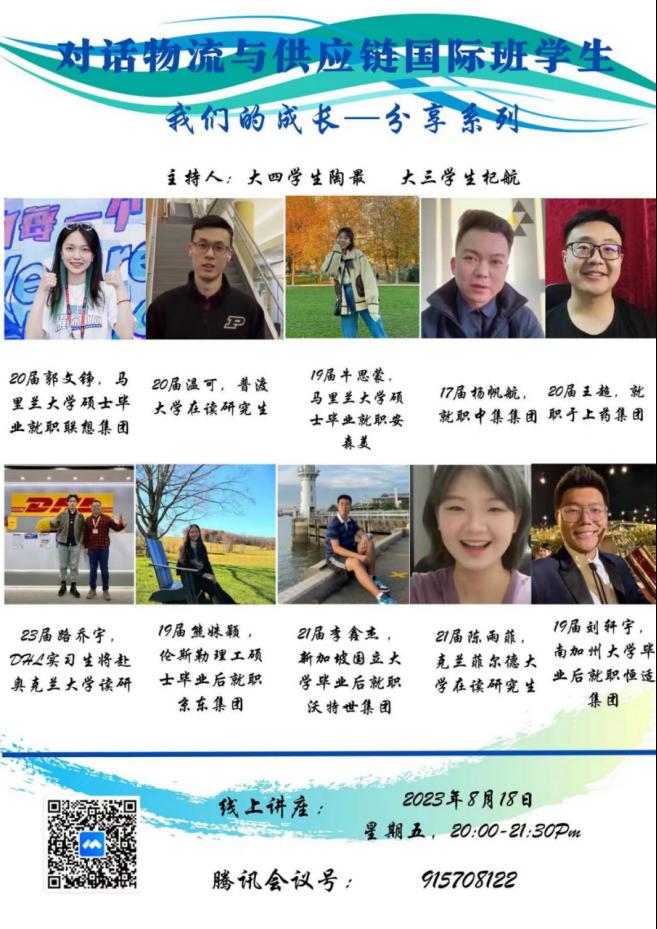 物流与供应链国际班的在读学生邀请了他们的海内外学姐学长,策划了本次“我们的成长”对话活动,相信这些分享一定能为等待加入供应链国际班的学弟学妹们带来启示。