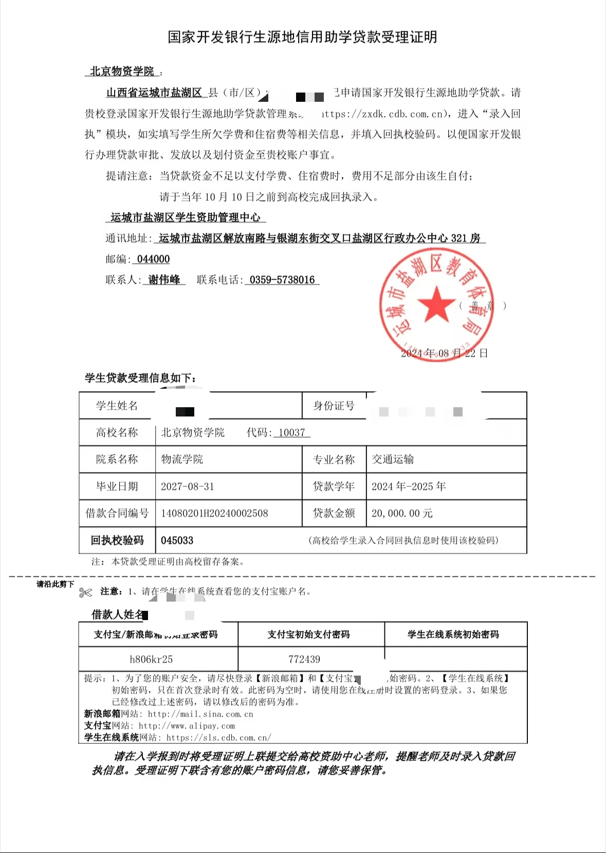 2025-2026学年“生源地贷款”收取的通知。