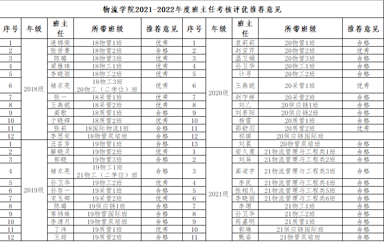 拟对2021-2022学年班主任考核评优工作做如下具体推荐意见。