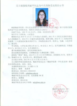 绿帽小说 第一学生党支部拟接收预备党员人员公示2013-5-13