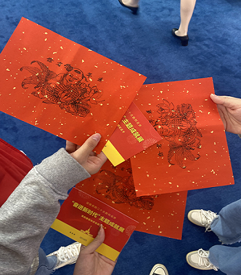 走进地方展厅,首先映入眼帘的是城市特色展,浙江的沉浸式空间,天津的杨柳青年画,广东的“鲲龙”模型,山东的各类手作等等……在一帧帧动人画面和精巧模型前,同学们纷纷驻足,在感受家乡变化的同时也了解到了全国各地高质量发展成果,并切身体验了各地的特色创作过程。地方展厅让各位同学深刻领悟到了自党的十八大以来,各地认真贯彻习近平总书记重要指示,落实好党中央交付的重大战略任务,坚定走好具有中国特色、体现时代特征、彰显我国社会主义制度优势的城市发展之路。