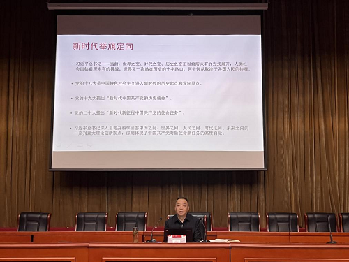 全体教职工、学生党员代表及联系班级20级物流管理2班学生讲授《深入学习党的二十大精神,推动事业高质量发展》专题党课。