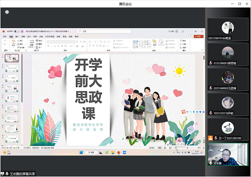 供应链管理专业学生党支部通过腾讯会议开展了开学前“大思政课”宣讲教育活动。党支部纵向管理下的各个本科生、研究生班组全体学生参加了本次宣传教育活动,本次宣讲教育活动由党支部书记王志鹏主讲。