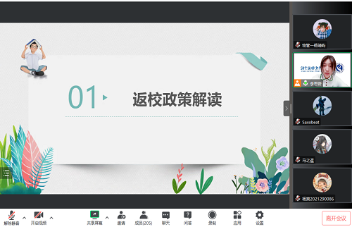 本次大思政课主要围绕返校政策解读、疫情影响下学生们所产生的心理问题调整方法以及开学前状态调整三个方面展开。各党支部书记首先对当下的返校政策和返校的注意事项进行了详细介绍,希望同学们在新学期伊始,能够严格遵守学校要求,分批次、安全、有序返校。同时,各党支部书记对同学们提出的返校相关问题进行了详细解答,强调大家要时刻做好自身防护,做自身健康的第一责任人。