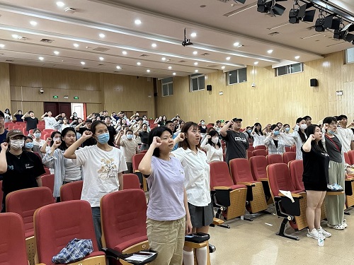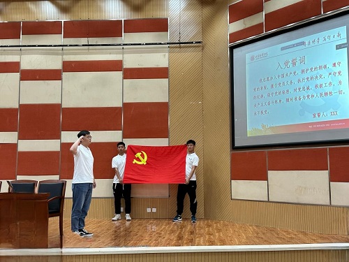 专题培训最后,全体毕业生党员面向党旗,高举右拳,庄严宣誓,以铮铮誓言再言入党初心,以嘹亮之声表明报国之志,坚定理想信念,牢记初心使命。