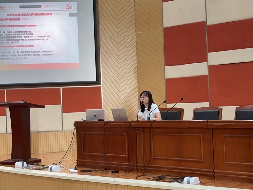 专职辅导员甄姿老师对毕业生党员组织关系转接具体要求和详细流程进行了专题培训,对党组织关系转接的范围、流程、介绍信抬头和去处,出国(境)升学毕业生党员申请保留党组织关系的条件和手续,党员E先锋系统操作等方面分别进行了详细讲解,对相关表格填写作了详细说明,列举了在组织关系转接过程中出现的常见问题及特殊情况的处理。甄姿老师希望毕业党员要认真落实党组织关系转接手续,杜绝出现“口袋党员”现象,牢记党员身份,严格遵守党章党规,认真履行党员义务,充分发挥党员先锋模范作用,铭记入党初心,矢志青春报国。