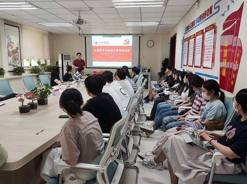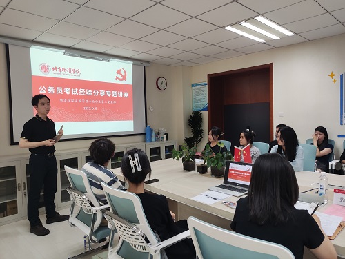 会议第二项,进行公务员考试经验分享专题讲座。北京市委教育工委秘书处干部高众老师分享了自己从事第一份工作的经历,因在工作中深刻理解为推动社会公益事业发展做出努力的意义,从而进一步明确了报考公务员的目标和信念,希望自己能够持续致力于助力推动新时代教育事业高质量发展。高众老师结合个人工作实践,详细介绍了公务员职业能力标准和职业发展路径,并从公务员考试要求、题型分析、应试技巧和面试准备等方面全方位分析阐述了如何高效地备考公务员考试。
