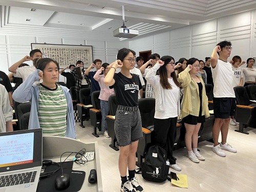 在采购管理专业学生第二党支部研究生书记胡文婧同志的带领下,全体新党员举起右手,紧握拳头,庄严宣誓,表达了为党的事业奋斗终身的决心和愿望。庄重而肃穆的入党宣誓,使每一位新党员加强了党性锤炼和党性修养,增强了党员的政治意识、大局意识、核心意识、看齐意识。