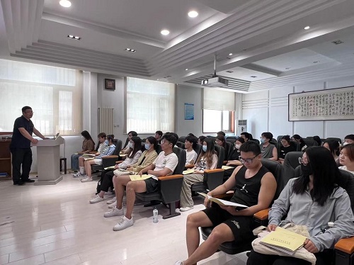 党委副书记孙涛老师就党的二十大对中国共产党章程的修订内容进行了具体讲授。党的二十大通过的《中国共产党章程(修正案)》,共修改50处,其中总纲部分的修改37处,条文部分的修改13处。孙涛老师从党章的概述、发展历程、总纲、条文等方面分别进行了详细的讲解。