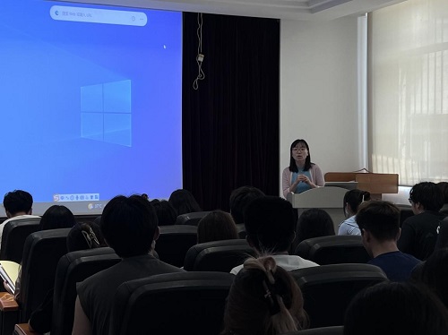 党委副书记孙涛老师主讲,采购管理专业学生第一党支部书记、辅导员甄姿老师主持,2023年全体新党员参加。