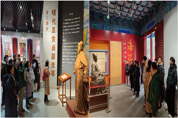 随后,师生党员来到“明镜昭廉”明代反贪尚廉历史文化园,园内由昭廉广场、明代反贪尚廉历史陈列展馆、明代清官廉吏展馆和海瑞事迹展馆组成,通过铜像、雕塑、布景、壁画、展板陈列等方式,以及历史警示、廉政寄语、廉政文化衍生品展示等环节,充分展现了明代反贪、惩贪、治贪的思想、实践和经验教训,充分弘扬了崇廉尚廉文化。参观过程中,讲解员向师生们详细讲述了明代监察制度、考核制度以及反腐律法反贪体系,具体介绍了海瑞、薛瑄等13位明代清官廉洁从政、廉洁用权、廉洁修身、廉洁齐家的故事。通过参观学习,师生们深刻理解了“清慎勤、廉生威、公生明”的实际内涵,感悟到共产党人要永葆党性纯洁先进和保持廉洁自律的重要意义。