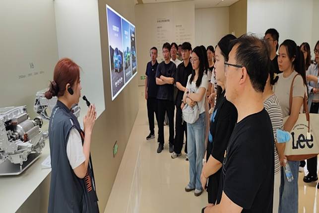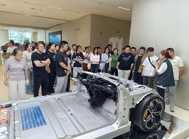 在讲解员的带领下,师生党员来到小米汽车展厅,实地感受小米首款量产车型SU7所展现的“美学”与“实用性”。讲解员围绕着产品定位、设计理念、社会责任等方面展开介绍。师生党员了解了小米汽车电机电池管理系统、大压铸工艺、智能驾驶等关键技术,体会小米汽车在人工智能、绿色环保、人性化设计等方面的设计理念,亲身感受到科技创新和智能制造领域的强大实力。