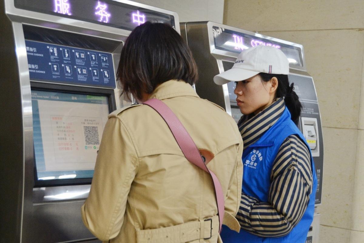 本次志愿活动分为站内和站外两个工作地点,站外主要在自助售票机处,学生党员为前来买票的乘客提供帮助和道路问询服务。在服务的过程中,可能会碰到老人想要买票却不知如何操作的情况,学生党员都会以百倍的耐心来帮助他们进行操作,对购票过程做详细的讲解,对于无纸币的乘客,还会为其推荐网络购票,指引乘客顺利购买所需车票,购票成功后温馨提醒乘客使用方法,避免乘客因使用不当而导致无法进站等不必要情况发生,还存在不清楚坐车路线的乘客,我们也会进行一定的引导,由此减轻车站工作人员的负担。