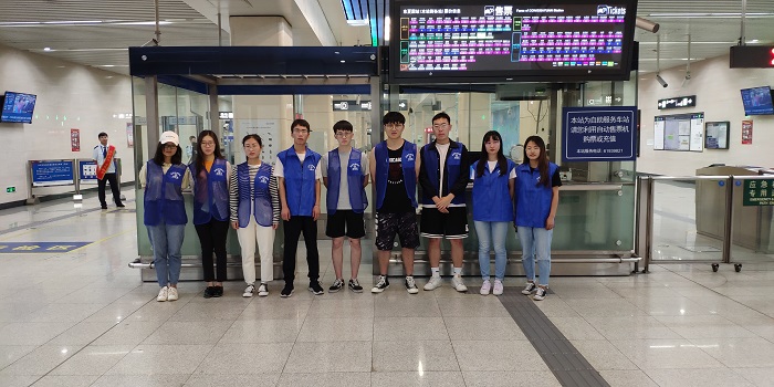 学生党员志愿者们坚守在自己的岗位上,负责帮助乘客使用自助取票机购买地铁车票、协助乘客为公交卡充值、指导乘客顺利进出闸机口等工作。当乘客购票或充值出现困难时,学生党员志愿者都会主动走近,细心跟他们说明方法步骤,最大化的提供我们的帮助。志愿者们站在自助售票机前耐心地指导乘客购票,对乘车前的地铁卡充值、网络购票、现金找换和线路规划等问题及时予以解决,为乘客出行助力;