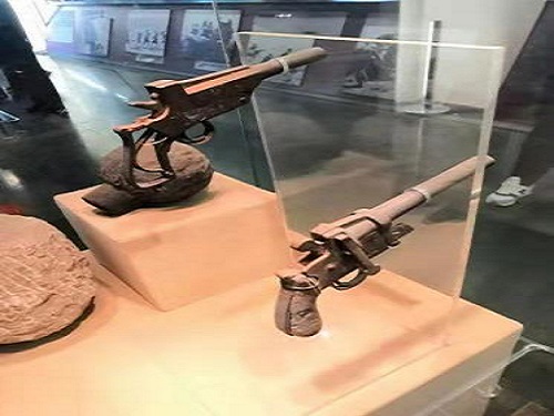 到达焦庄户地道战遗址后,同学们在展区内进行自由参观。展区里展出了共产党使用的各种枪支,抗日战争时代的书籍手稿,讲解员讲述了焦家庄村民英勇抗战的事迹,以及各种不同地道不同用处的使用方法。