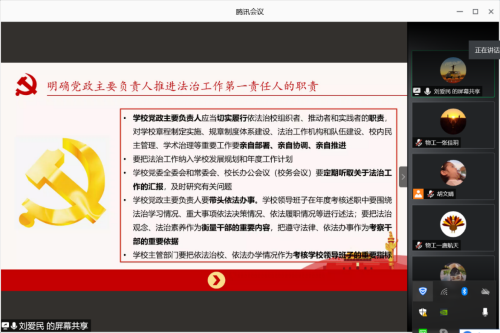 9个学生党支部于2020年9月16日12:00在腾讯会议上开展学习《教育部关于进一步加强高等学校法治工作的意见》线上云党课。