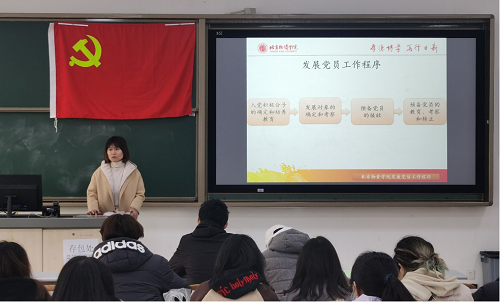发展党员工作程序”为主题的入党积极分子培训第四讲。此次入党积极分子培训班分别由物流管理、物流工程、采购管理、供应链管理、质量管理工程五个专业学生第一党支部书记李思奇、李清月、甄姿、王志鹏、刘晨老师主讲。