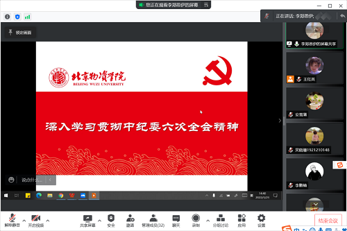 10个学生党支部通过腾讯会议形式,以党支部为单位集中开展3月学史悟思系列专题党课学习。本次党课由各学生党支部书记主讲,全体学生党员参加了此次党课学习。