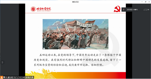 在宣讲中,各党支部学生党员以中国共产党百年历史时期为时间线,分别从新民主主义革命时期、社会主义革命和建设时期、改革开放和社会主义现代化建设新时期以及中国特色社会主义新时代四个时期,为团员青年讲述了中国共产党在一百年间领导青年运动的发展历程及引领青年未来发展的启示。从习近平总书记关于青年工作的重要思想出发,深刻回答了新时代培养什么样的青年、怎样培养青年,建设什么样的共青团、怎样建设共青团等方向性、全局性、战略性重大课题,引导团员发挥带头示范作用,思考如何在实践中增强做中国人的志气、骨气、底气,将自我融入时代的奋进潮流当中,把握好时代精神,团结带领新时代中国青年在实现中华民族伟大复兴的中国梦的进程中不断开拓创新、奋发有为,在成长中彰显青春价值,在奋斗中砥砺强国之志!