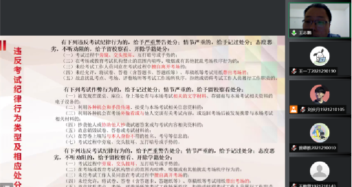 授课开始后,党支部书记王志鹏首先借用《荀子·劝学》的例子,结合自身的学习经历,强调“不积跬步无以至千里”、“不积小流无以成江海”,学习贵在持之以恒,自律自省;接着,强调了“健康打卡”和“疫苗接种”的重要性,指出居家学习的“优点”和“缺点”,并向同学们强调自制力在此次疫情居家学习办公的重要性;随后,通过介绍近期学术不端的案例以及学校规定的考试纪律,呼吁同学们讲诚信、攻学业,杜绝任何形式的作弊行为,端正自我学习态度;最后,王老师也强调在纵向管理下,学生党员更要勤于学业,乐于学习,充分发挥先锋模范作用,敬畏知识,敬畏学问,弘扬良好学风。