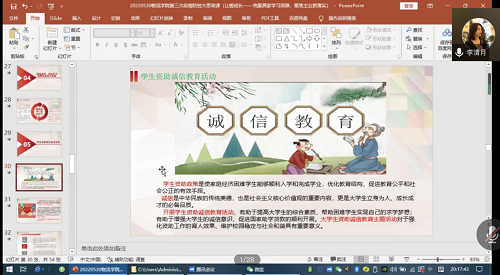 此外,李清月老师向同学们详细介绍了学生资助政策、学生违反诚信申请资助的主要后果,让同学们了解了学生资助诚信教育活动的同时,强调诚信的重要性,进一步警示同学们失信后的代价。李清月老师希望同学们谨记诚信守信、弘扬诚信精神,同时作为一名青年党员,更应诚信借助国家资助,积极地把正确的诚信认知、自觉的诚信养成、积极的诚信实践紧密结合起来,进一步提高了大学生言行一致、恪守诚信的思想自觉和行动自觉。引导同学们在日常的学习生活中,夯实“诚信做人、诚信治学、诚信考试、诚信科研、诚信立业”的思想基础,重视诚信价值,推动诚信教育,共创诚信校园,走诚信人生之路。