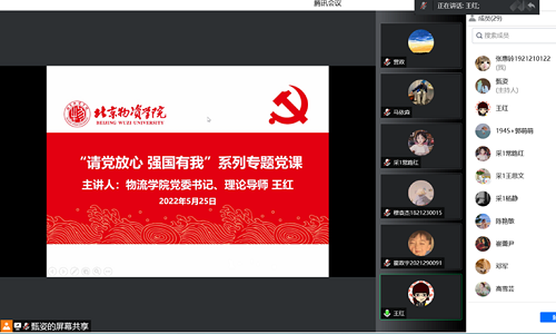 党委书记王红、院长姜旭、副书记孙涛、科研副院长刘若阳,分别对接采购管理学生第一党支部、物流工程专业学生第一党支部、物流管理专业学生第一党支部、供应链管理专业学生第一党支部。专题党课由对接指导党员领导干部讲授,各学生党支部书记主持,各专业全体学生党员参加专题党课。