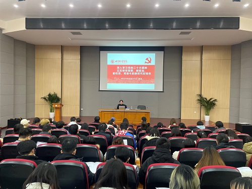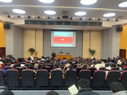 党委书记郝庆在知新楼二层报告厅为学院分党校入党积极分子培训班全体学员讲授《深入学习党的二十大精神,做有理想、敢担当、能吃苦、肯奋斗的新时代好青年》专题党课。