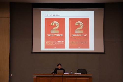 郝庆对党的二十大报告主要内容、重要概念、新时代理论创新的关注点进行了深刻解读,带领全体学员深入学习贯彻习近平新时代中国特色社会主义思想。她指出,入党积极分子们要牢牢把握习近平新时代中国特色社会主义思想的世界观和方法论,牢牢把握过去五年的工作和新时代十年的伟大变革的重大意义,牢牢把握以中国式现代化推进中华民族伟大复兴的历史使命,牢牢把握以伟大的自我革命引领伟大社会革命的重要要求,牢牢把握团结奋斗的时代要求,通过五个牢牢把握来深入学习党的二十大精神。
