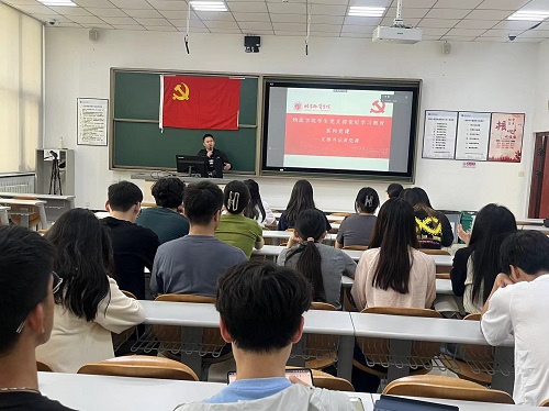 《学生违纪处理办法(试行)的第三章纪律处分细则》并作出强调,学生党员必须树牢纪律意识,在学习的过程中加深对党、社会、学校的纪律的认识和理解,自觉强化自我约束,凝聚干事创业的精气神,在新时代新征程上作出新贡献。之后,集中领学了《习近平寄语新时代青年强调:奋力书写为中国式现代化挺膺担当的青春篇章》、吴惠书记在《人民日报》发表的文章:《科学有效降低全社会物流成本》等内容,强调学生党员们要具有理想、敢担当、能吃苦、肯奋斗的精神,争取在科学有效地降低全社会物流成本的过程中贡献自己的一份力量。