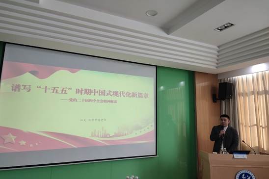 专题讲座上,江文结合深耕多年的中共党史与党的建设研究领域,以《谱写“十五五”时期中国式现代化新篇章——党的二十届四中全会精神解读》为主题,从“十四五”规划完成情况、国内外形势与中国式现代化任务、“十五五”规划主要内容、“十五五”规划亮点特点四个核心方面,紧扣党的二十届四中全会精神,通过深入浅出的理论阐释、鲜活生动的实践案例,深刻剖析“十五五”时期的历史使命与重大原则,系统解读“十五五”时期经济社会发展的指导方针、战略任务及重大举措,为广大师生深刻把握中国式现代化核心要义提供了重要思想启迪。