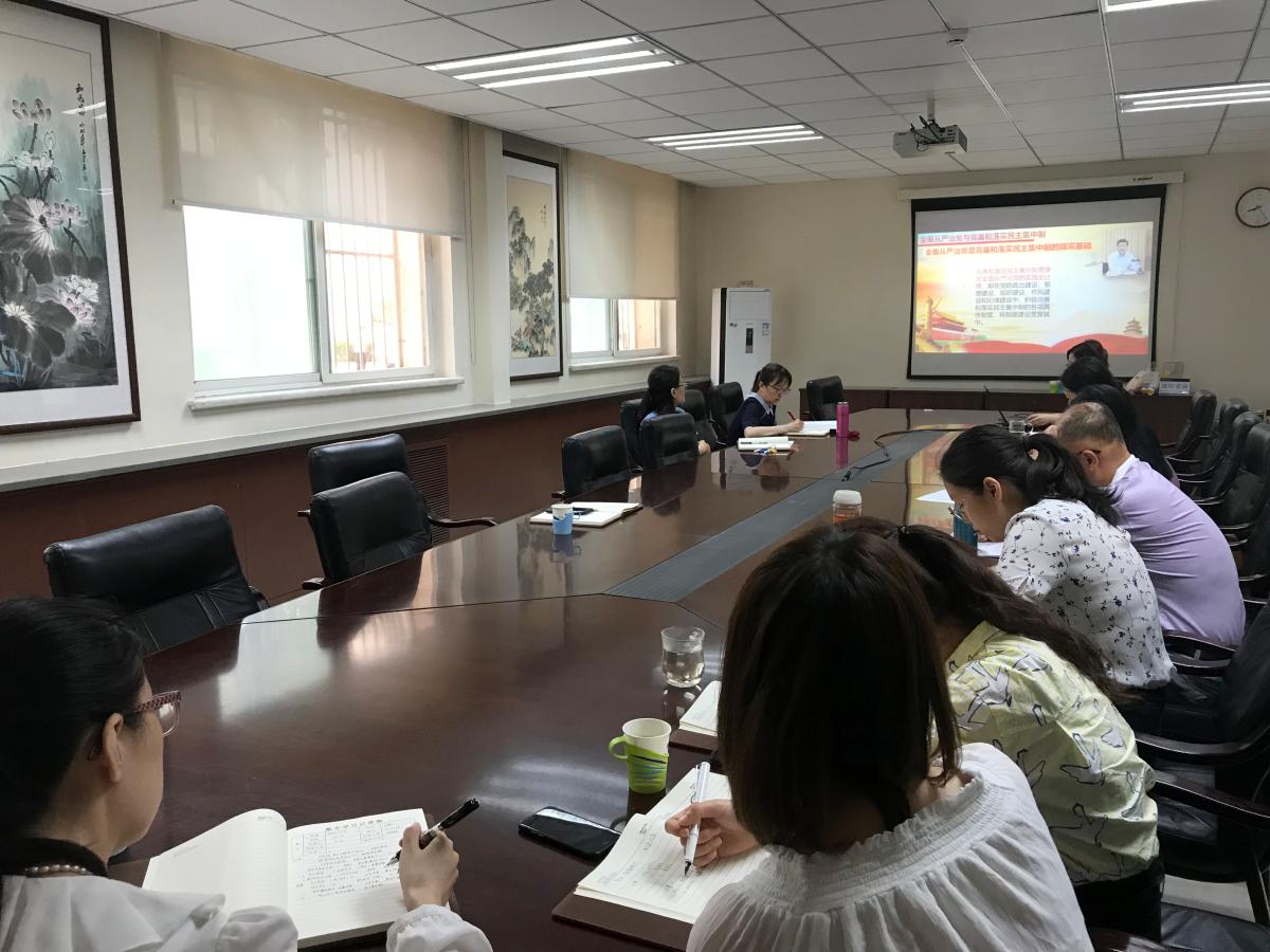 随后,陈老师对全面从严治党重要论述进行分析,全面从严治党是完善和落实民主集中制的现实基础,在党的政治建设、思想建设、组织建设、作风建设和纪律建设中,积极完善和落实民主集中制的各项具体制度,将制度建设贯穿其中。并就关于党风廉政建设和反腐败斗争在会议上进行了论述分析。党中央坚定不移反对腐败的决心没有变,坚决遏制腐败现象蔓延势头的目标没有变。全党同志对党中央在反腐败斗争上的决心要有足够自信,对反腐败斗争取得的成绩要有足够自信,对反腐败斗争带来的正能量要有足够自信,对反腐败斗争的光明前景要有足够自信。
