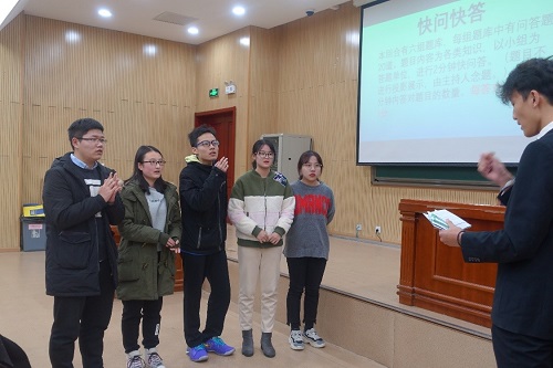 比赛过程中,选手们准备充分,应对灵活,积极作答,努力为班级争得荣誉,充分展现了同学们丰富的知识储备的和团结协作的精神,场上气氛紧张有序。此外,比赛还设置了场下观众作答环节,所有人都争先恐后地举手抢答,现场气氛活跃,同学们的喝彩声、欢呼声不绝于耳。