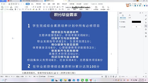而后,陈浩聪同学讲解素质积分要求和细则规定,并鼓励大家积极参加学校和学院开展的一系列活动,保证顺利完成100素质积分的基本毕业要求。张文涛同学介绍了近期各类竞赛情况,就专业学科竞赛给予学分及素质积分奖励规则进行了讲解,号召大家关注竞赛后期通知。