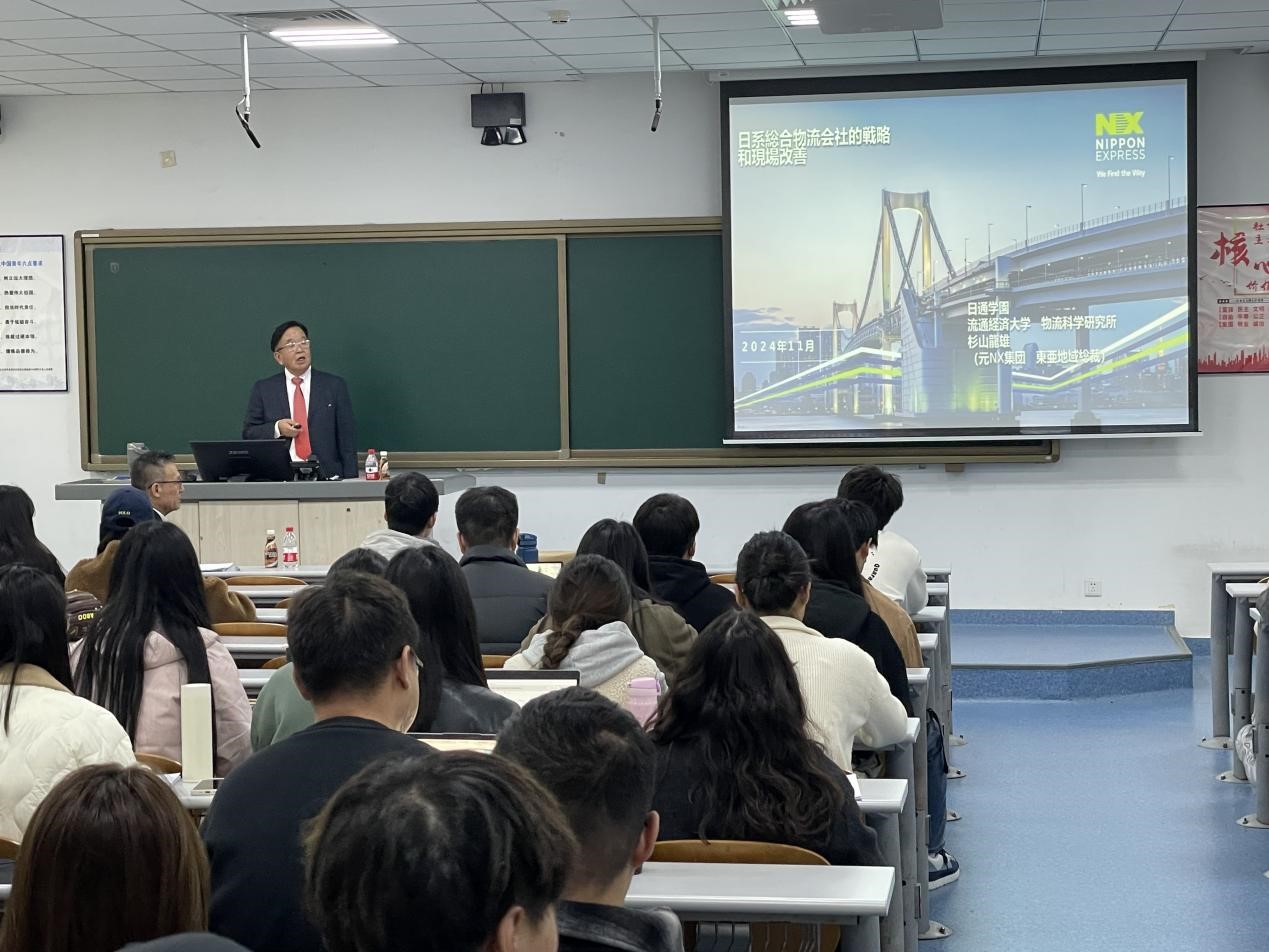 2024年11月,NX国际物流(中国)东亚地区事业本部海运物流部部长斉藤備則来校做《海运基础知识》讲座;