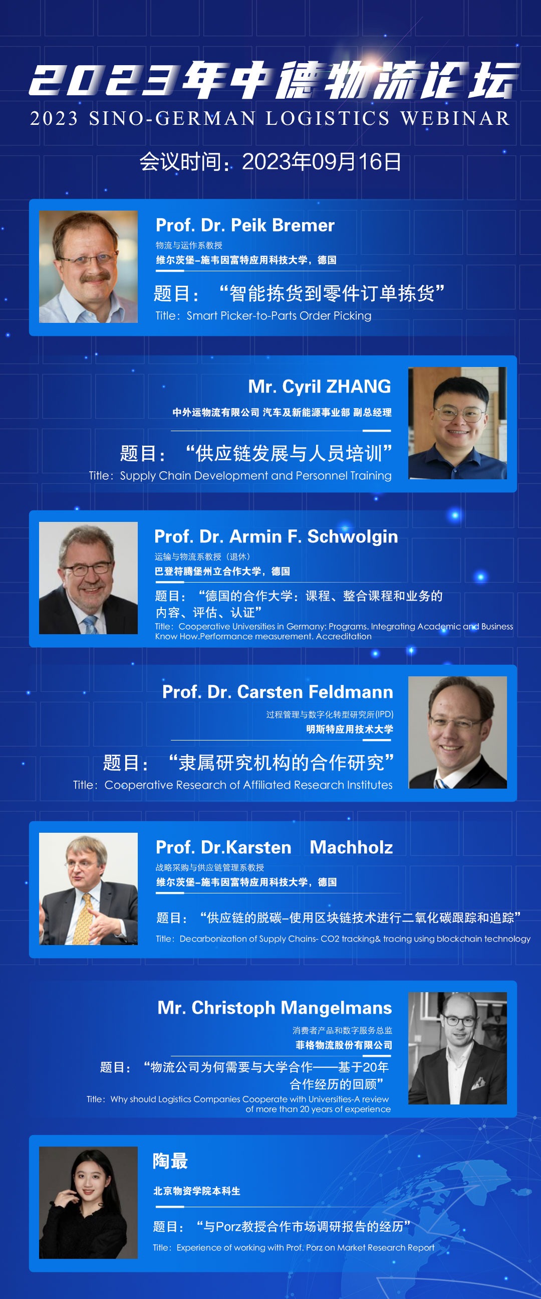 继续举行线上中德物流论坛,与德国院校、企业及中国物流企业开展学术及行业发展交流。
