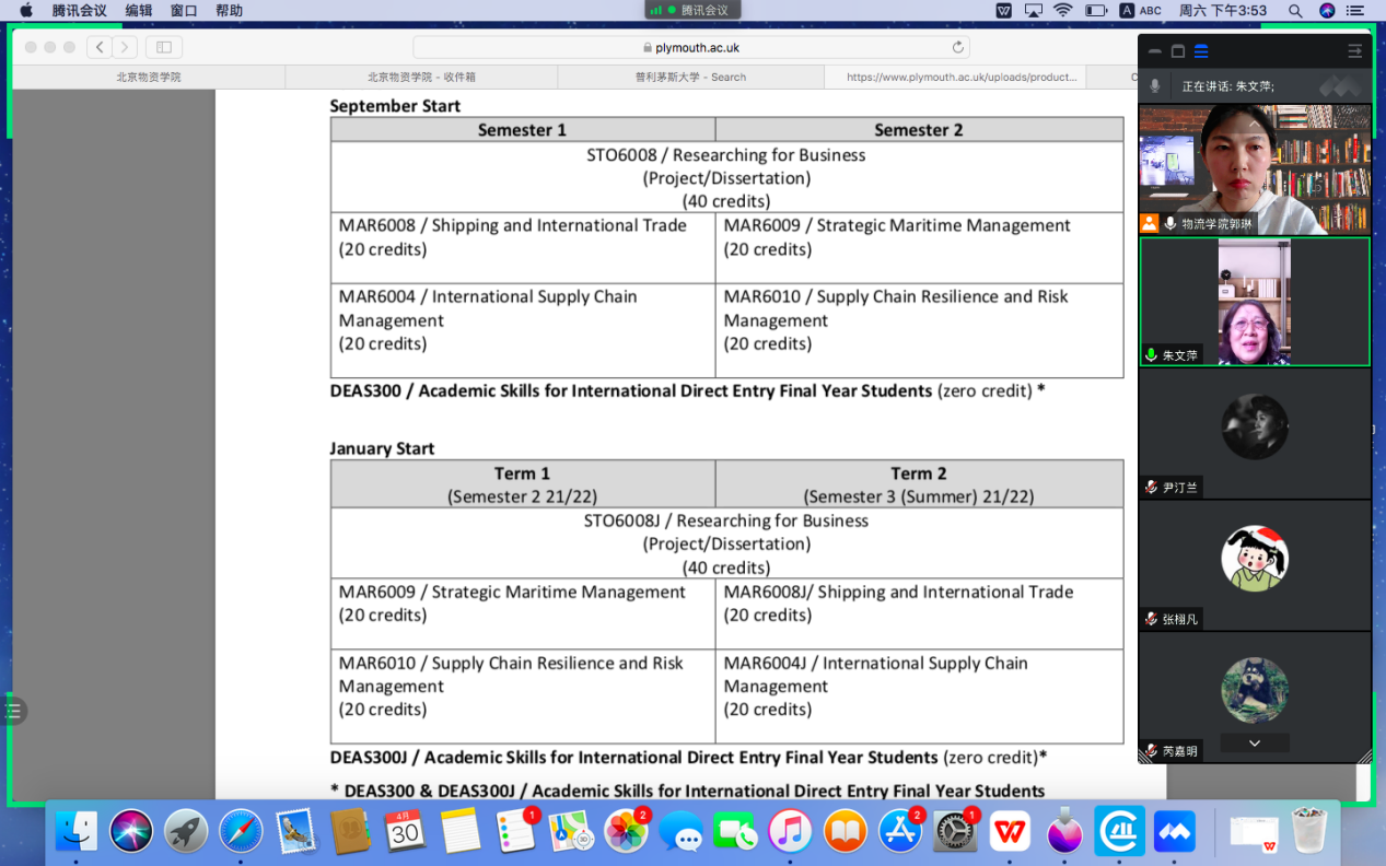 绿帽小说 举行英国普利茅斯大学项目沟通会 来源: 发布时间:2022-04-30 浏览次数: 次 2022年4月30日下午,绿帽小说 芮嘉明副院长、供应链管理专业张栩凡副主任、对外合作办公室郭琳老师邀请英国普利茅斯大学朱文萍老师一起为国际供应链专业计划赴英国普利茅斯大学学习的三位同学召开线上沟通会。芮院长对学生的学分转换及毕业环节做了解释说明,张栩凡主任对学生的毕业设计等做了说明,郭琳老师对学生毕业环节中的体测等环节进行强调。 学院将继续推进学生的国际化培养,为学生出国学习创造更多机会。