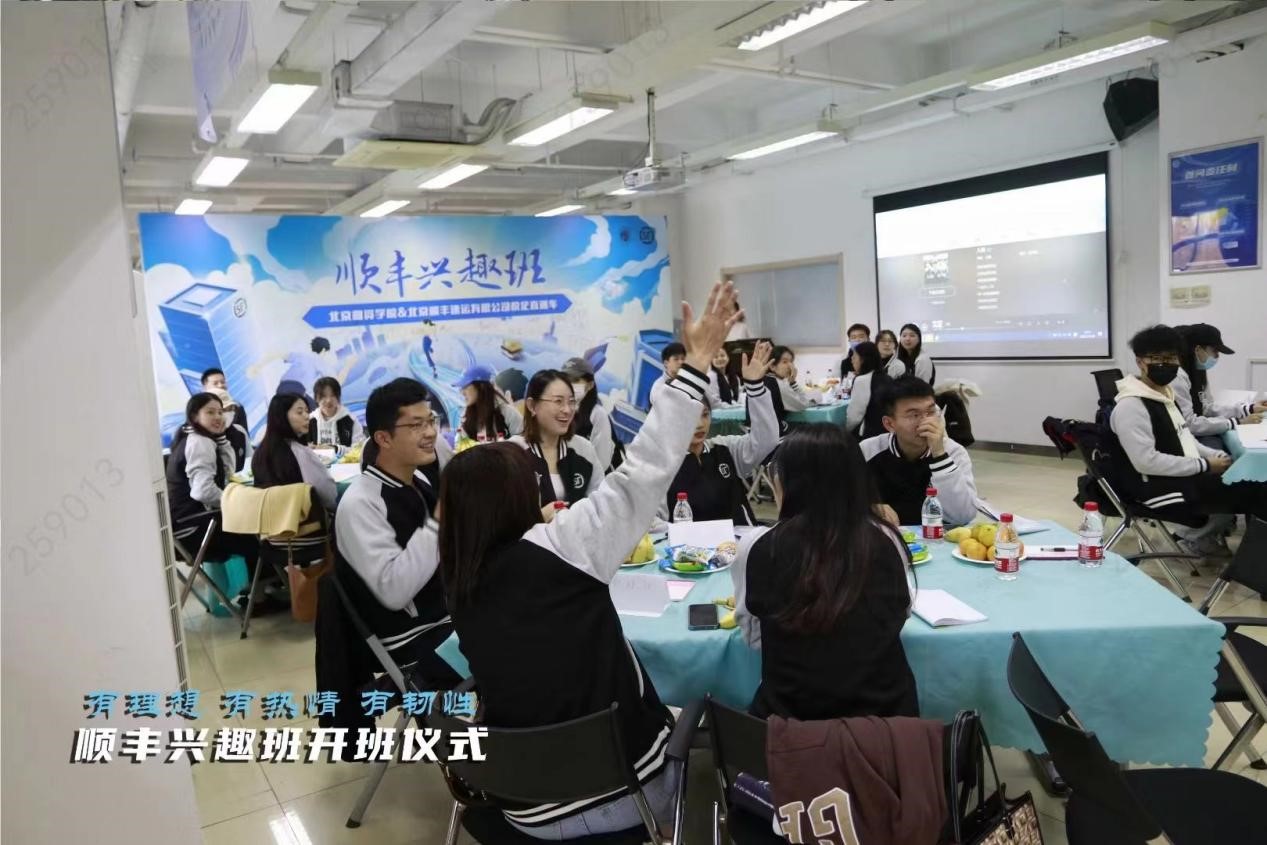 上午8:30,兴趣班同学们乘坐公司大巴车抵达北京顺丰速运总部后,公司人力资源部门李航、董笙静等为同学们分发印有顺丰专属logo的班服。同学们在换上崭新的班服后,沟通见面会也就此拉开序幕。