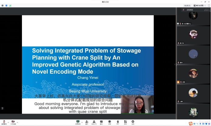 常祎妹副教授的演讲主题为“采用基于指派策略的遗传算法求解考虑岸桥的集装箱配载计划问题”,她大家介绍了集装箱船舶配载问题的一种更加科学的解决方法,同时考虑了集装箱配载与起重机调度两方面的问题,并建立了数学模型、进行求解验证。