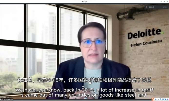 海伦·库西诺女士的演讲主题为从更高角度看国际物流对全球贸易的影响,她向大家介绍了近四五年供应链中采购发生的重大变化,并介绍了疫情大流行与关税增加背景下供应链上下游企业发展思路所产生的转变。