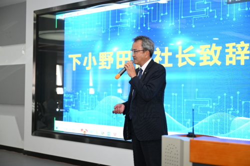 在主持人宣读了2022年、2023年NX国际物流奖学金获奖名单以及第五届NX国际物流班学生名单后,下小野田恒社长用中文对同学们提出好好学习、为物流行业做出贡献的殷切希望。