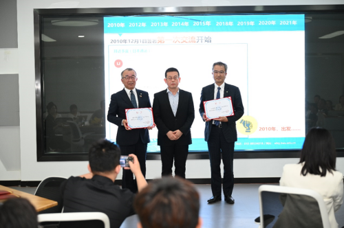 随后,姜旭院长为松尾纯利总括、下小野田恒社长颁发了客座教授证书。