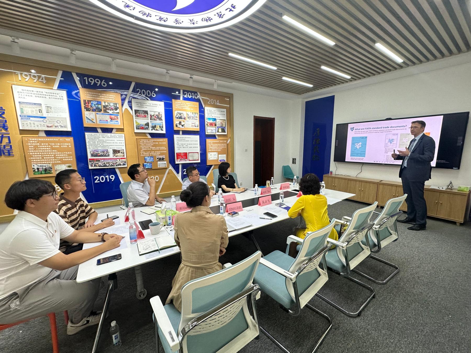 斯蒂芬·格雷博先生介绍了FIATA的基本情况。国际货运代理协会成立于1926年,总部位于瑞士日内瓦。作为国际物流和货运行业的权威组织,FIATA致力于为全球货运代理和物流服务提供商提供支持和指导。其成员遍布全球,包括货运代理、物流服务提供商、管道运输服务商、航空公司、铁路运输公司、港口经营方等。FIATA为会员提供一系列服务,包括涉及国际货物运输的条约、法规和标准的制定、推广和实施,以及对货运代理业务的推广和培训等。FIATA的主要目标是推动全球货运代理业务的发展和进化,创造一个安全、可靠和高效的国际货物运输环境。斯蒂芬·格雷博先生曾就职于日内瓦大学,同时具有行业与高校从业经验。双方就供应链管理的数字化、绿色供应链、物流人才培养及培训等问题进行了交流,并取得了一致意见。