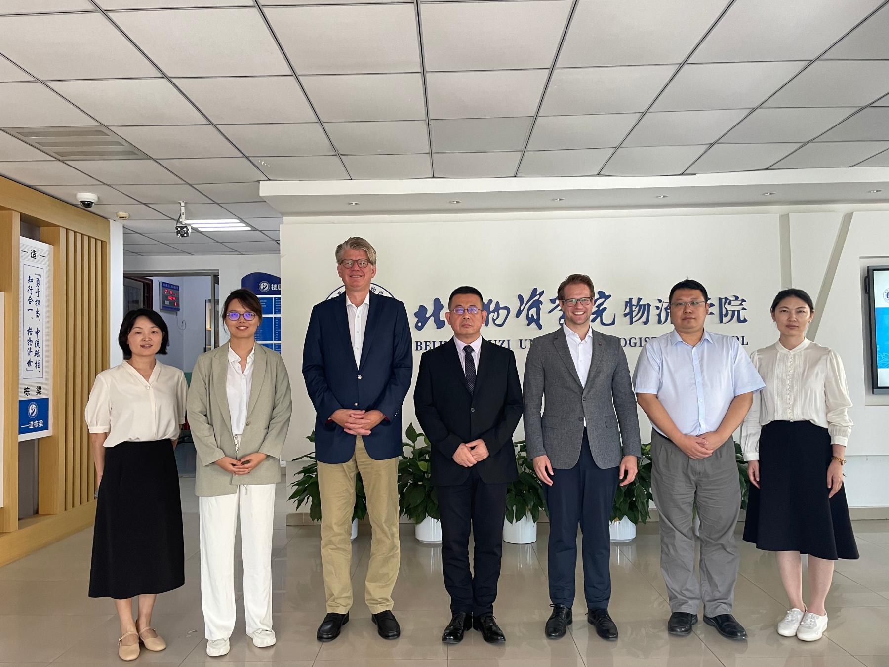 姜旭院长首先对科恩教授和谢弗教授一行的来访表示热烈欢迎,并表示十分开心双方回到疫情之前的交流状态。姜旭院长回顾了双方合作的中德物流论坛、学生交换生项目以及教师研修项目,希望今后学生交流项目更加深入,学生毕业之后可以去德国就业以及深造,也对老师们去德国交流表示全力支持。